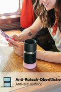 Der Thermobecher ist seit ein paar Wochen mein treuer Begleiter. Er ist einfach zu reinigen und er hält meinen Tee schön lange warm, ohne etwas zu verschütten. Vielen Dank für dieses tolle Produkt!