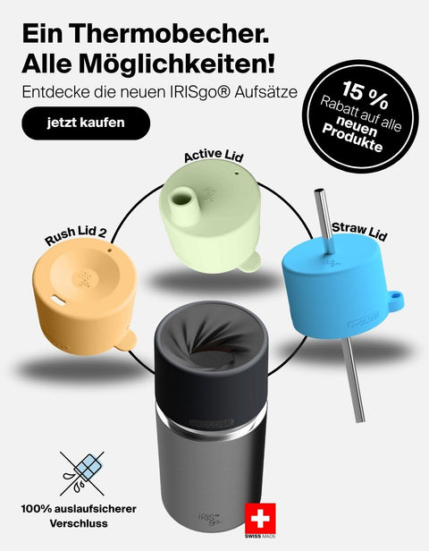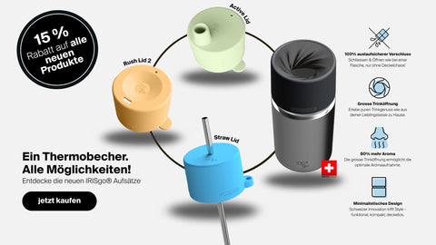 Egal ob Coffee to go, Sporteinheit, Roadtrip oder Sommerdrink – mit den neuen Flex Lids hast du immer den passenden Aufsatz für deinen IRISgo® cup.