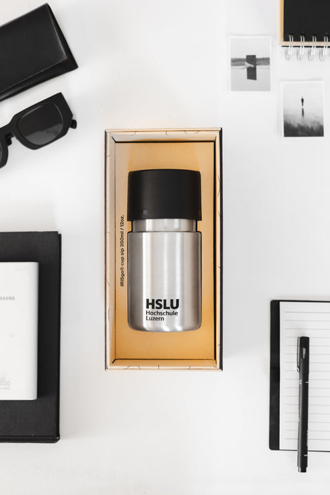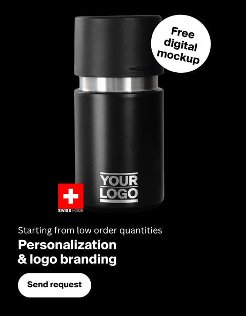 Precise, long lasting laser logo engraving on the IRISgo® cup. Premium corporate branding for B2B, from small batches to large runs.