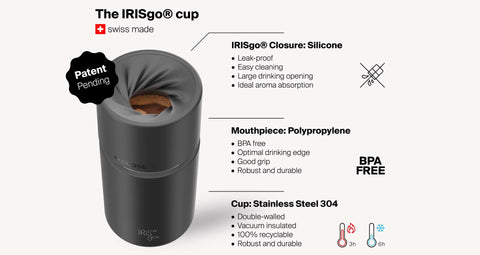 Did you know that we absorb around 80% of the taste through our nose? That's exactly why cups and wine glasses have large drinking openings. We took this into account when developing the IRISgo® cup. No matter where you are, experience maximum drinking pleasure with our IRISgo® cup.